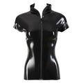 Long black latex shirt with short sleeves and a zipper in the front to perfectly emphasise your curves.